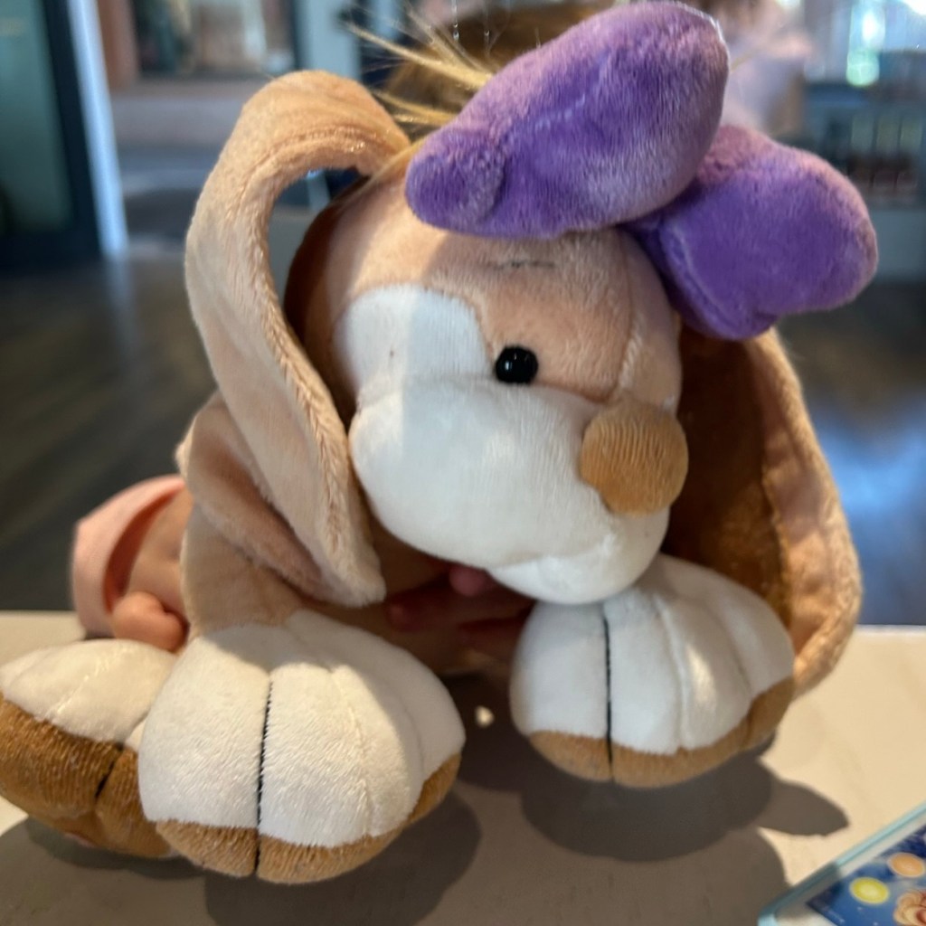 Stavamo andando verso la pasticceria, qua una signora anziana si è affacciata dal balcone e mi ha urlato “Signora, signora a spete n’atimo” (in italiano “aspetti un attimo). Subito ho pensato che Amelia nel tragitto avesse perso qualcosa e invece… l’ho vista scomparire per poi ritornare con il peluche che vedete in foto e l’ha lanciato dal terrazzino dicendo che ne ha e non sa cosa farne e che era per la “toseta” (bambina).