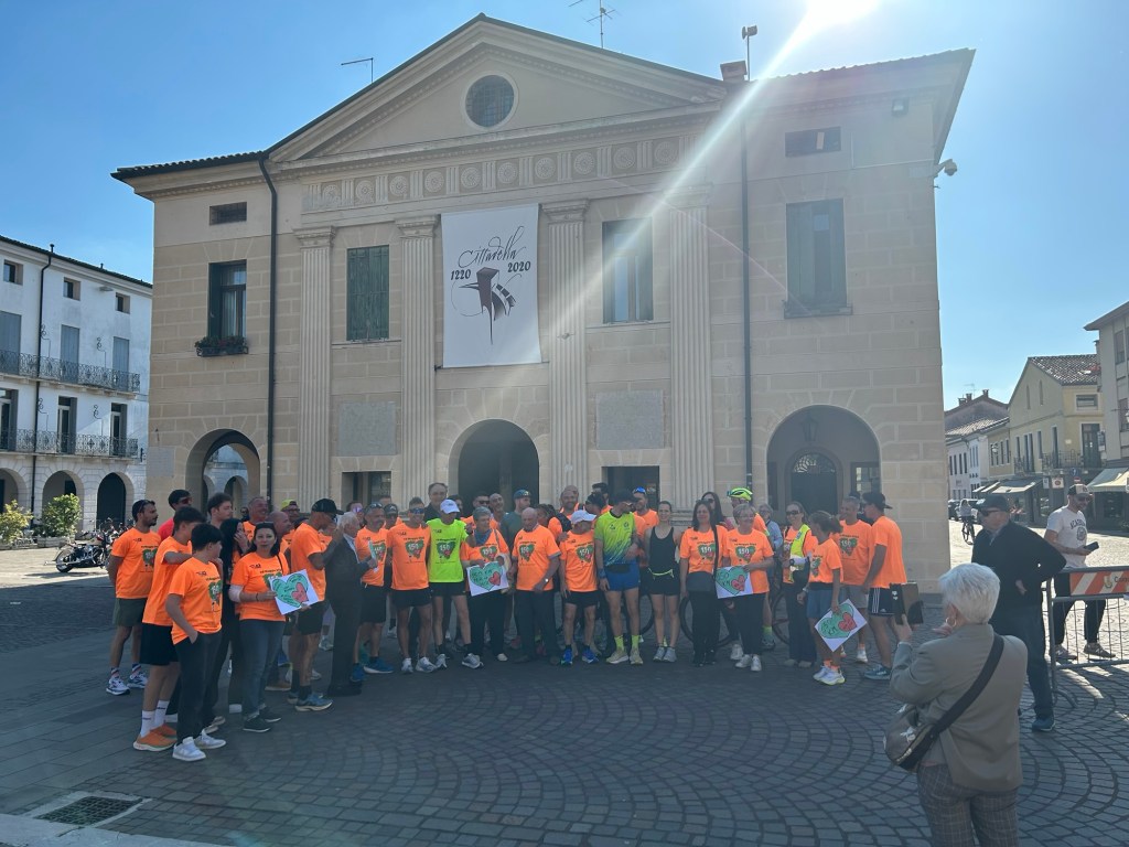 Un’intera giornata attraversando tre province e diversi paesi del Veneto. Luogo di partenza e di arrivo la piazza di San Giorgio in Bosco (PD), comune di residenza del runner che da anni porta avanti questa iniziativa. Ad ogni tappa un gruppo di podisti a sostenere il passo di Denis.